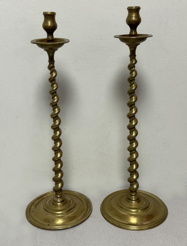 SOLD ITEM 11405 - English brass spiral twist candlesticks c1880