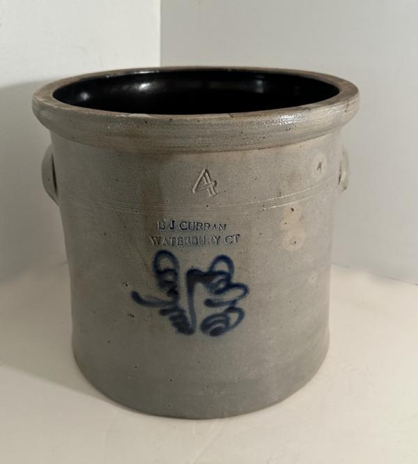 SOLD ITEM 11791 - Stoneware crock stamped B J Curran Waterbury CT