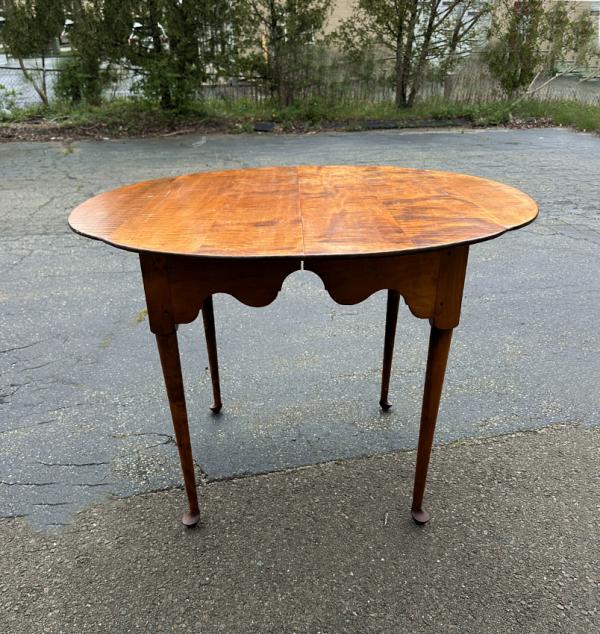 SOLD ITEM 11852 - D R Dimes tiger maple table with two leaves