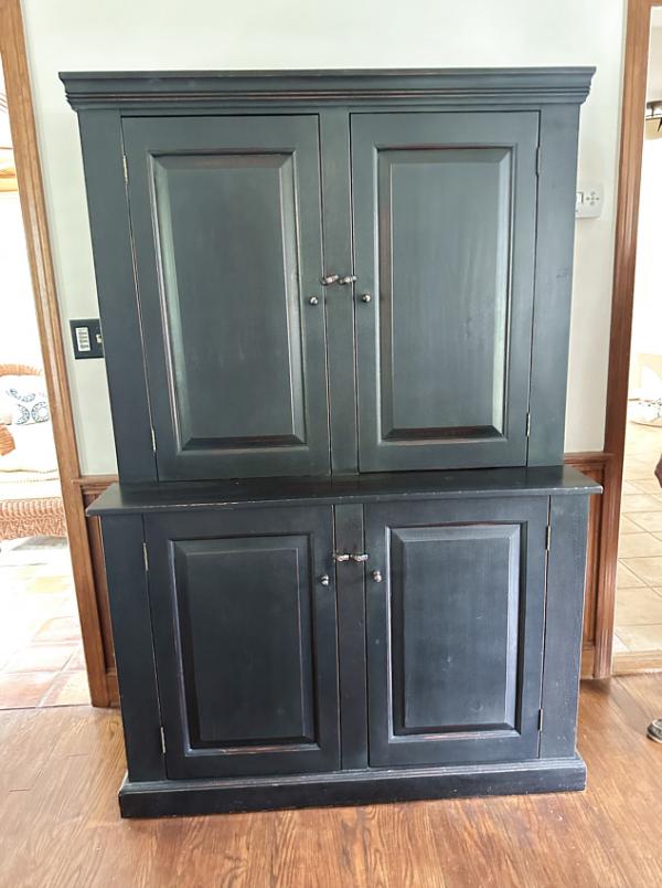 SOLD ITEM 11946 - Vintage D R Dimes stepback cupboard in crackle black