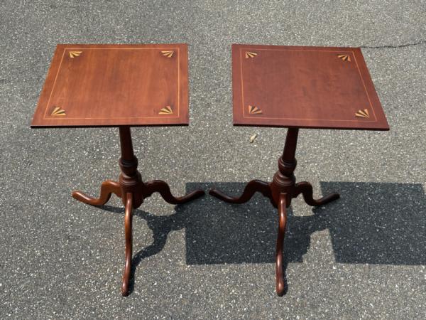 SOLD ITEM 11969 - Rare Eldred Wheeler pair of inlaid candle stands