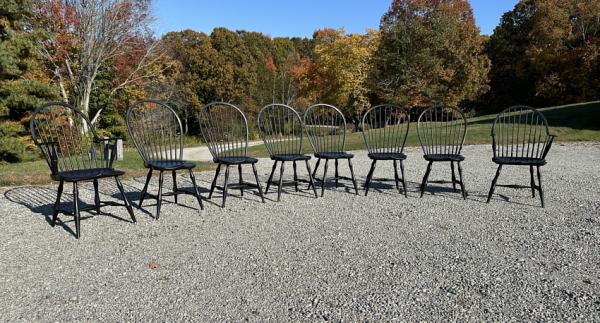 Set of 8 D. R. Dimes bow back bamboo Windsor chairs . . .
