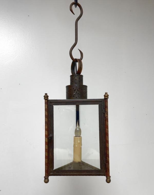 SOLD ITEM 12202 - RDS triangle pendant lantern in aged tin