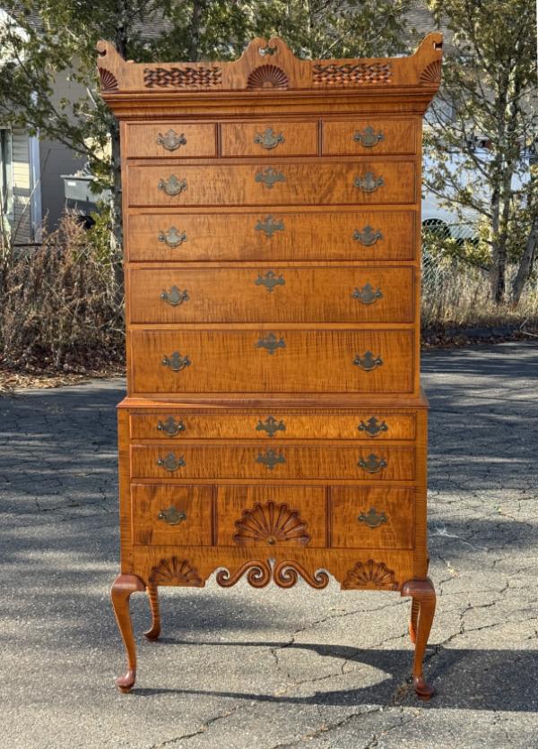 Eldred Wheeler tiger maple highboy in the Dunlap style . . .