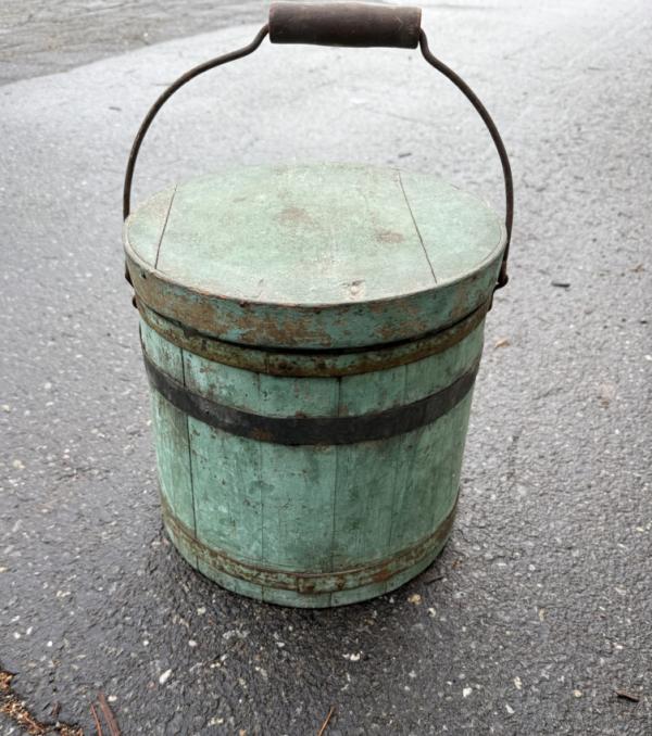 19th century teal blue firkin in original untouched . . .