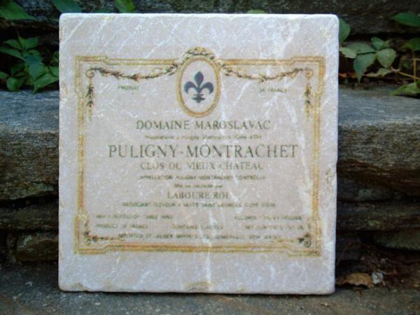 SOLD ITEM 1873 - Puligny Montrachet Clos du Vieux Chateau wine label image on marble tile