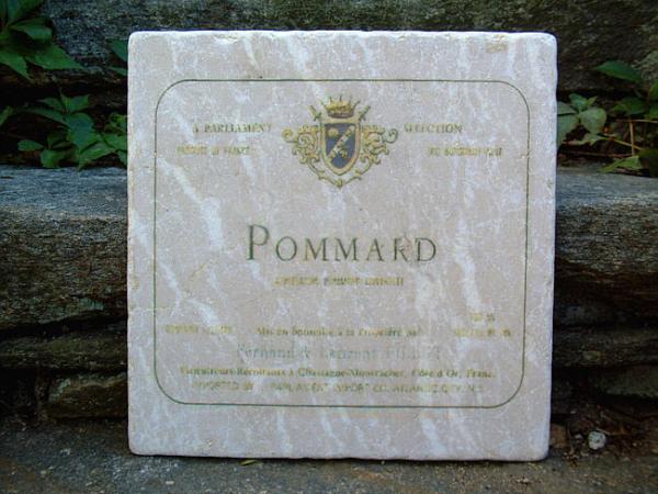 SOLD ITEM 1874 - Pommard Bottocino wine label image on marble tile