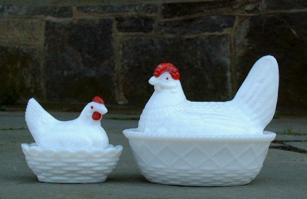 Set of 3 Milk Glass Hens in a basket. Unfortunately, . . .