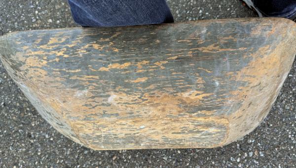 SOLD ITEM 12372 - Early primitive dough bowl in original gray wash c1800