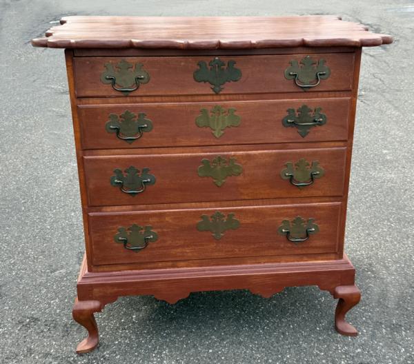 SOLD ITEM 12373 - Elldred Wheeler chest on frame with scalloped top Historic Deerfield c1780