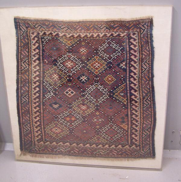 SOLD ITEM 6751 - Small antique Oriental Prayer Rug carpet framed