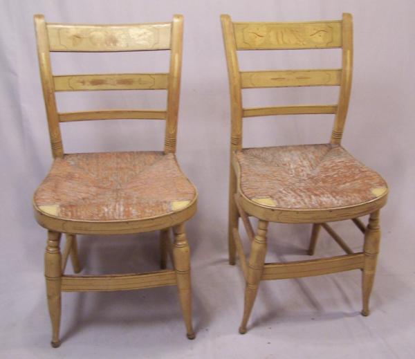 SOLD ITEM 8997 - Pr of American country yellow painted chairs Sheraton c1820